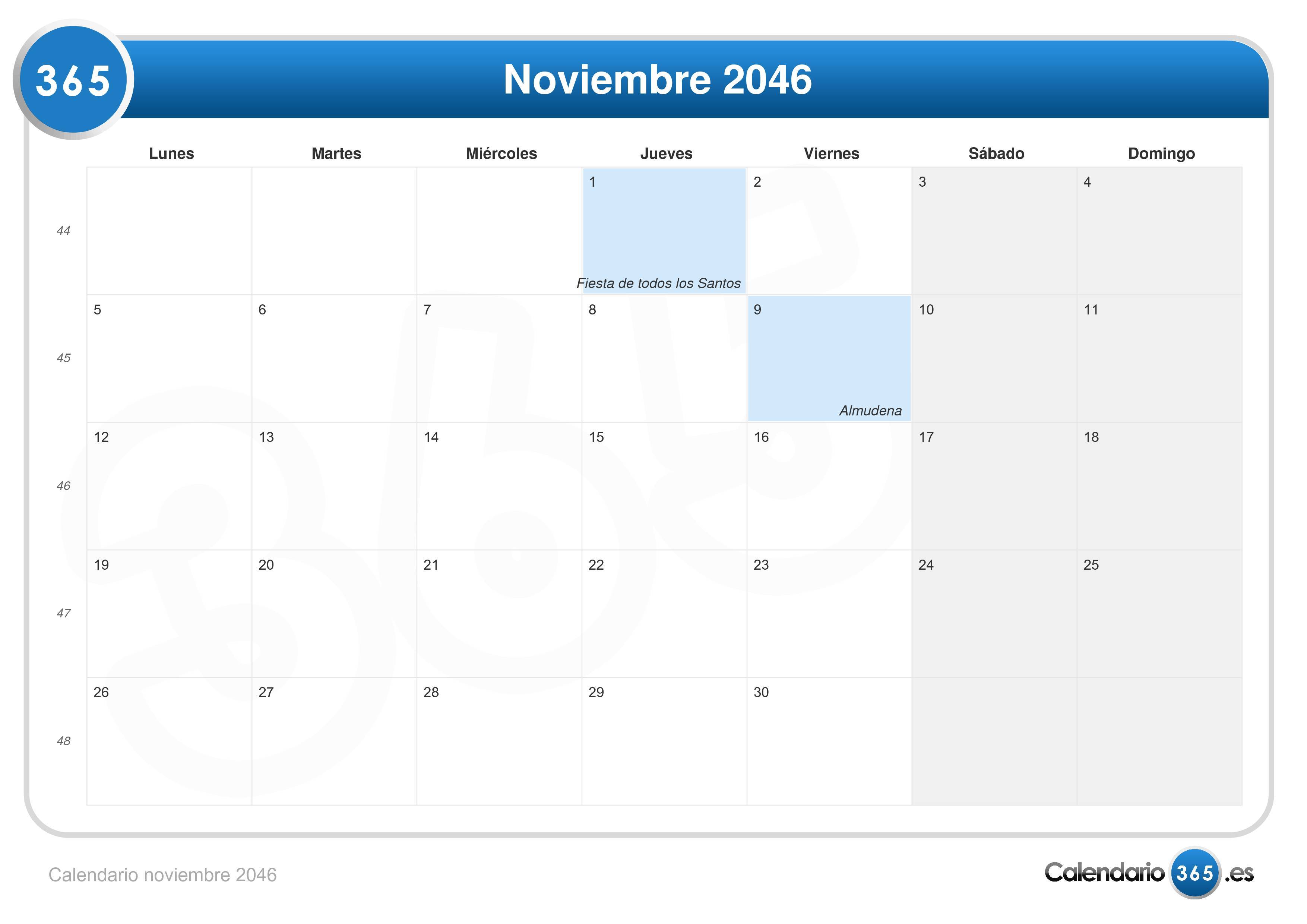 Calendario noviembre 2046