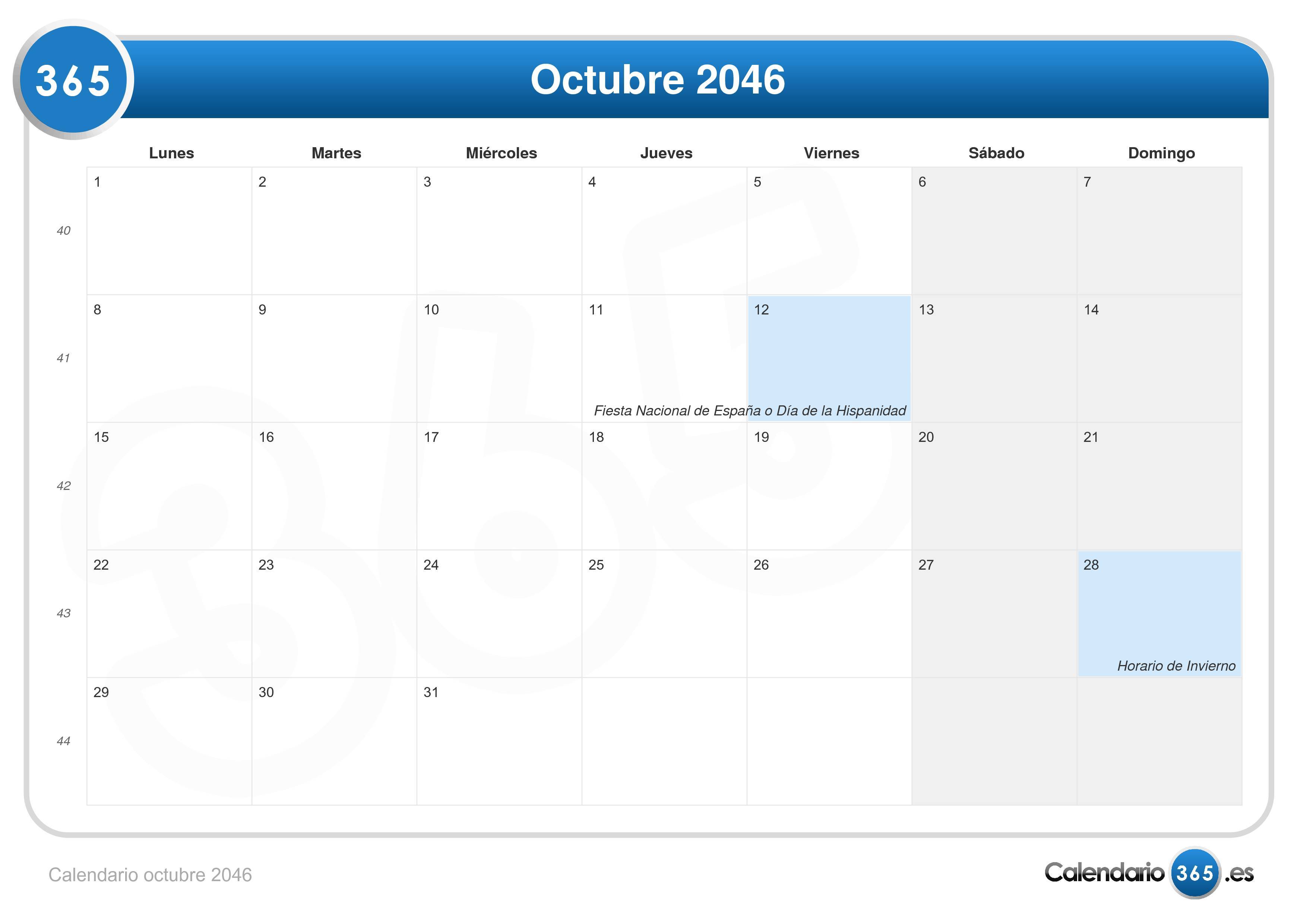 Calendario octubre 2046